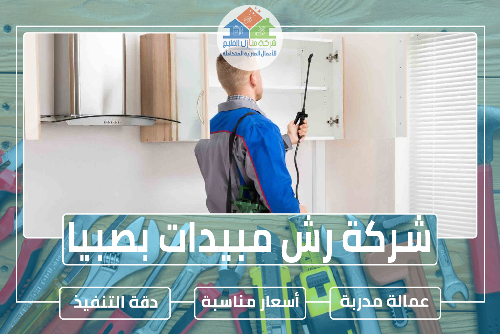 شركة رش مبيدات بصبيا شركة منازل الخليج. تعتمد على إستخدام أفضل الطرق في إبادة الحشرات ورش المبيدات. ويقدم هذه الطرق طاقم من أكفأ الفنيين والخبراء المدربين على إبادة الحشرات ورش المبيدات. ومن الطرق التي تتبعها الشركة تكون كالاتي :-