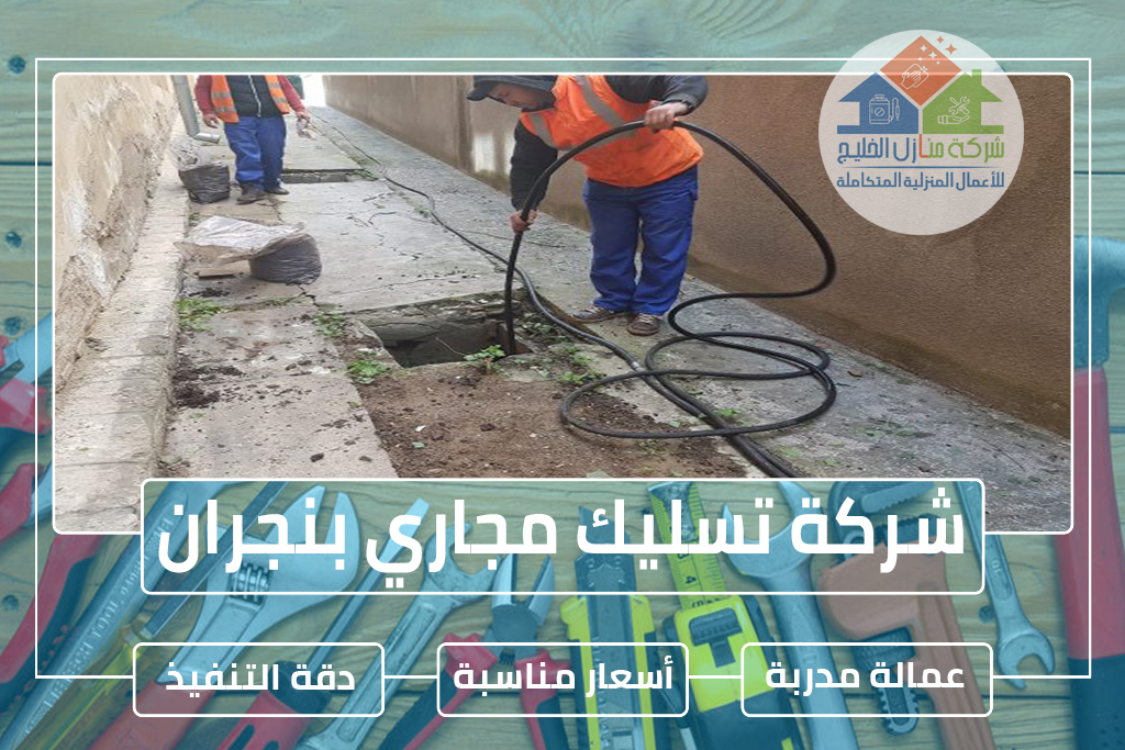 تتم خدمات شركة تسليك مجارى بنجران شركة منازل الخليج تحت يد فريق محترف من أمهر العمالة وهو تم تدريبه على أعلى المستويات، وسوف يساعدنا للتخلص من انسداد المجاري وتسليكها إذ أن هناك طرق كثيرة ومتعددة تتبعها شركة تسليك مجارى بنجران ومن هذه الطرق الآتي:-